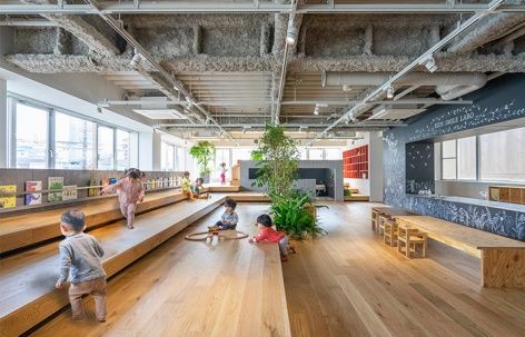 KIDS SMILE LABO Nursery by HIBINOSEKKEI + Youji no Shiro + KIDS DESIGN LABO Architecture KIDS SMILE LABO Nursery by HIBINOSEKKEI + Youji no Shiro + KIDS DESIGN LABO Small Forest Laboratory in a Building 2021-09-01